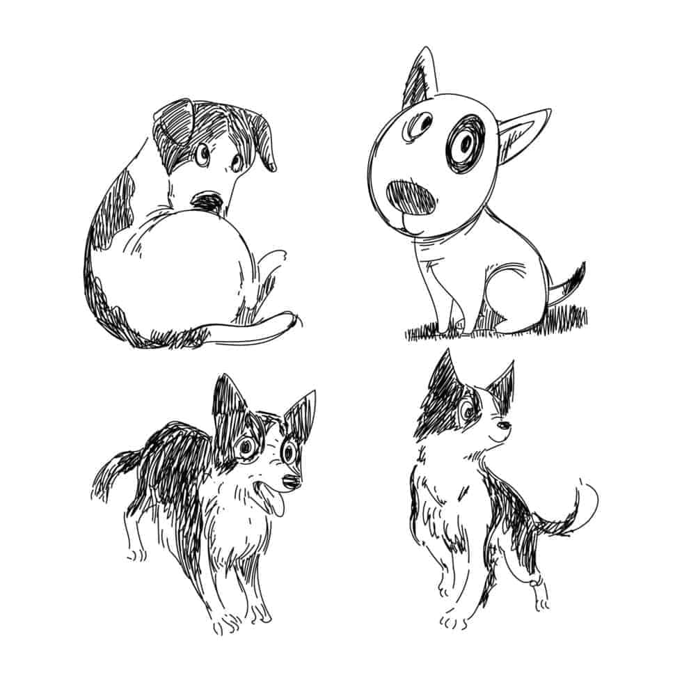 Set of variuos dog hand drawing