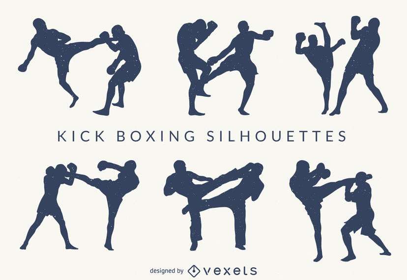 Kick-boxing silhouettes set
