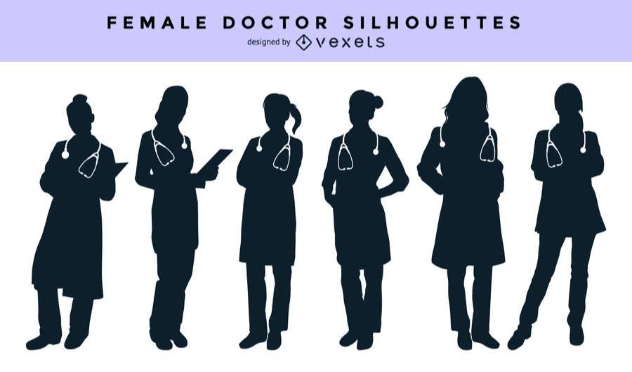 Female doctor silhouette set
