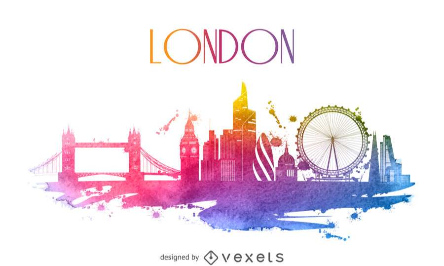 London watercolor skyline silhouette