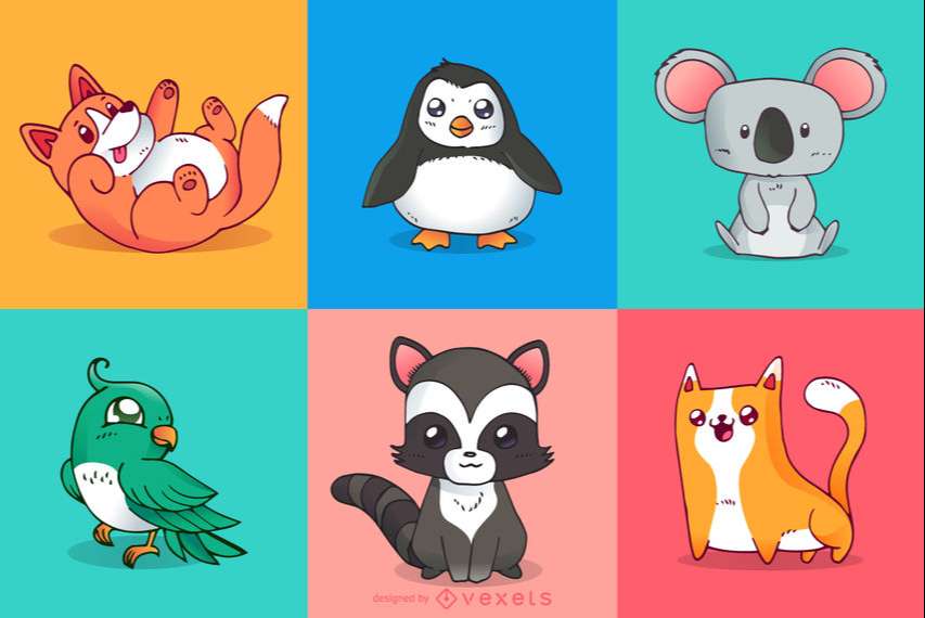 Cute animals cartoon illustration set