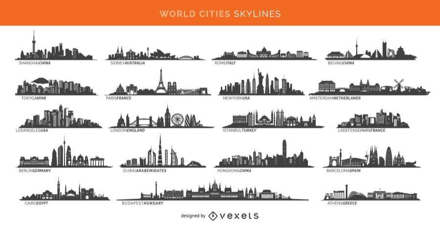 19 famous cities skylines including Paris, London, Sidney