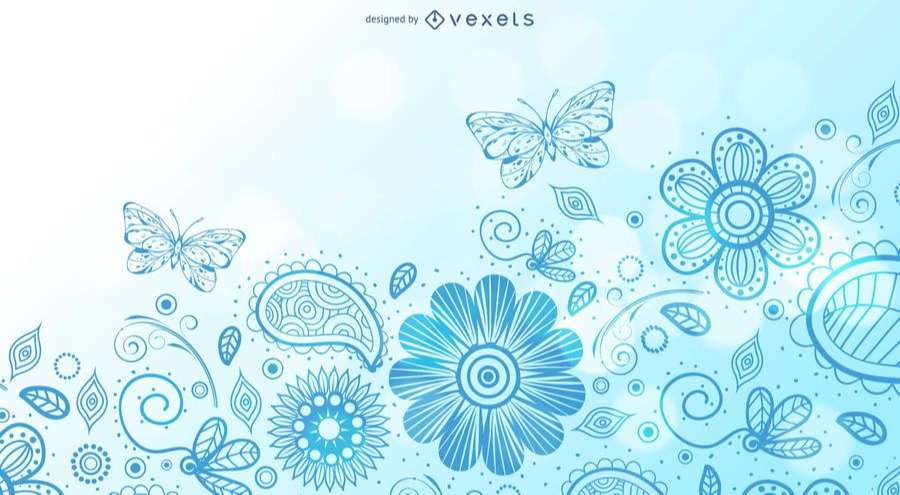 Swirling Floral Background with Butterfly