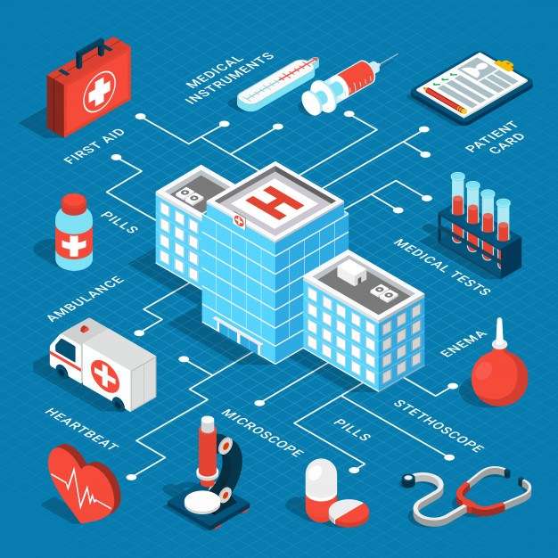Isometric medical flowchart