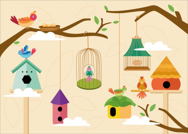 Cute birds cage vector