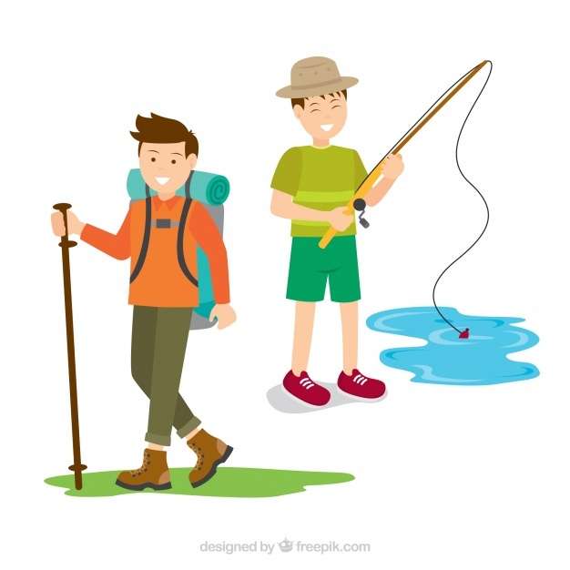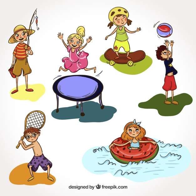 Hand drawn people doing leisure outdoor activities