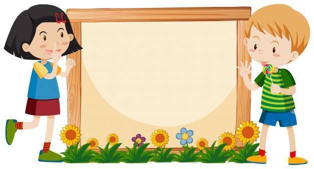 Banner template design with boy and girl in garden
