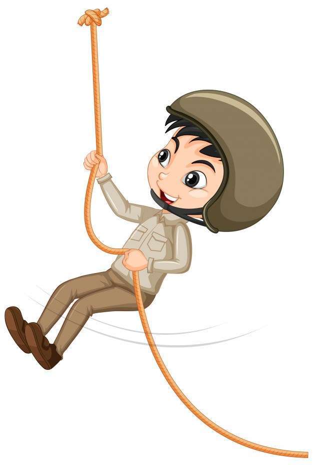 Boy climbing rope
