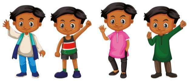 Boy with happy face in four different costume