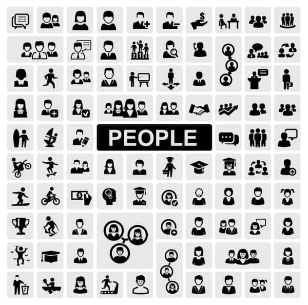 Common black and white icon set 15 – people vector material
