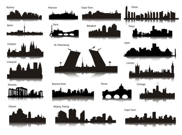 the famous city landmarks silhouette 2