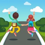 - Boy and girl students on a way to school