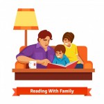 - Happy family reading together. Mother, father