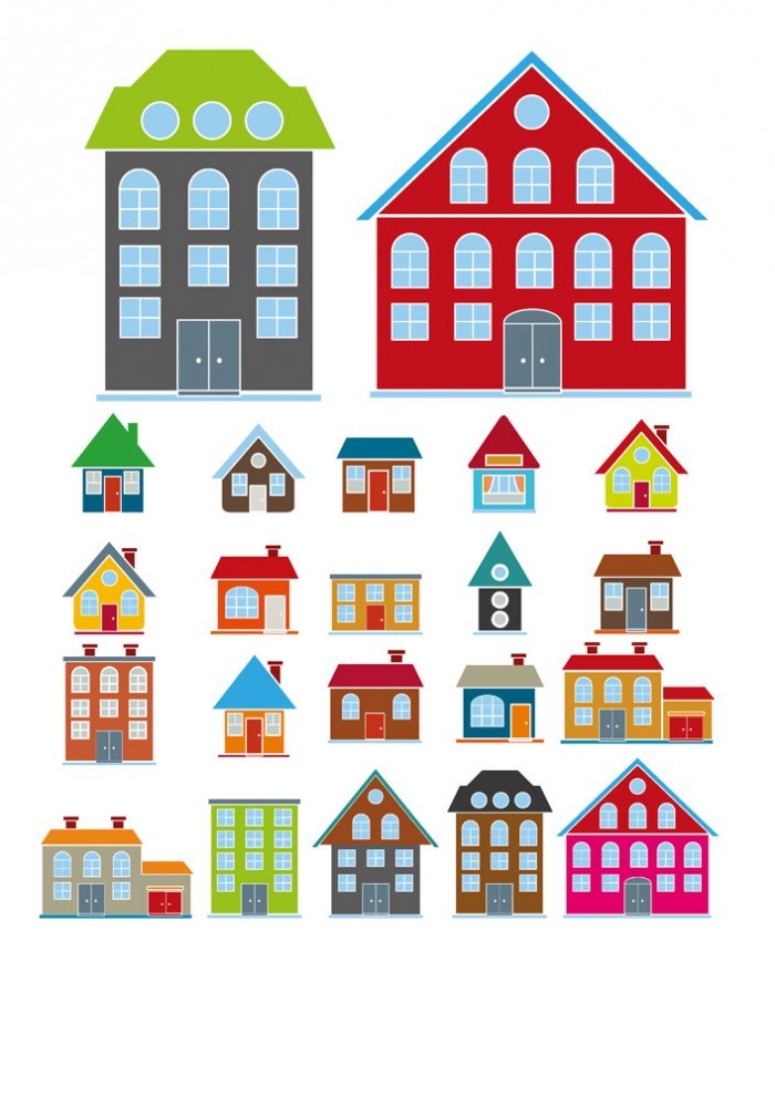 Different collection of buildings housing construction model
