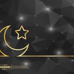 - Black polygon background with golden moon and star