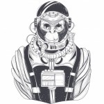 - Vector hand drawn illustration of a monkey astronaut, chimpanzee in a space suit